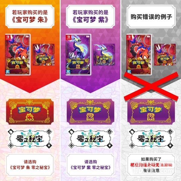 《零之秘宝》分为《宝可梦朱:零之秘宝》和《宝可梦紫:零之秘宝》2种。玩家购买的DLC会根据所持的是《宝可梦:朱》还是《宝可梦:紫》而有所不同。拥有《宝可梦:朱》的玩家需要购买《宝可梦朱:零之秘宝》。拥有《宝可梦:紫》的玩家则需要购买《宝可梦紫:零之秘宝》。如果购买了相反的组合将无法游玩。注意一定不要买错。