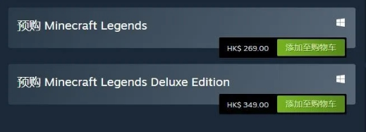 我的世界传奇标准版售价为119元,豪华版售价为139元。