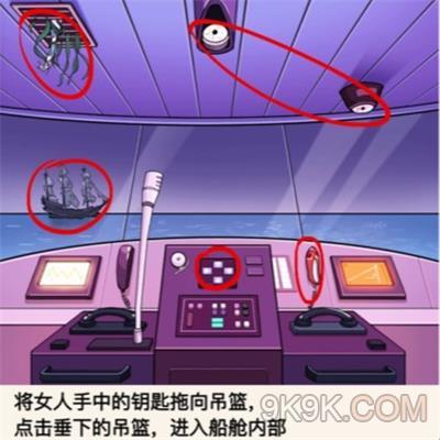 2.然后将女人手中的钥匙拖向吊篮,点击垂下的吊篮,进入船舱内部。