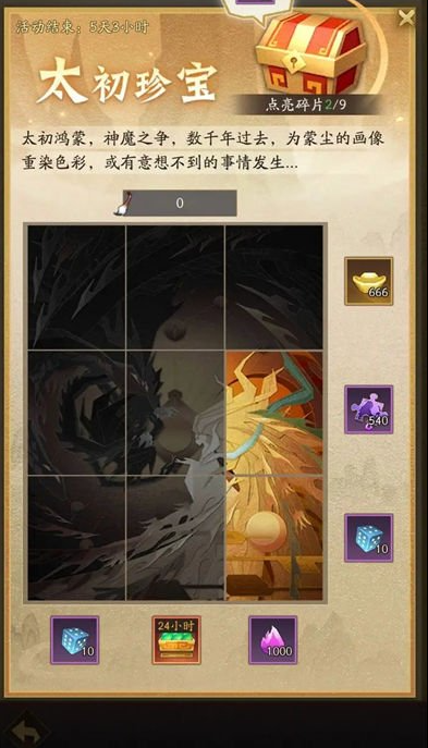 宝藏中的“太初绘笔”需要道友们在“寻踪迷影”活动界面中的“太初珍宝”里使用,使用“太初绘笔”即可点亮太初珍宝中的碎片,点亮每行每列都可以获得对应行列的珍宝,同时点亮9个碎片还有一份额外奖励哦!