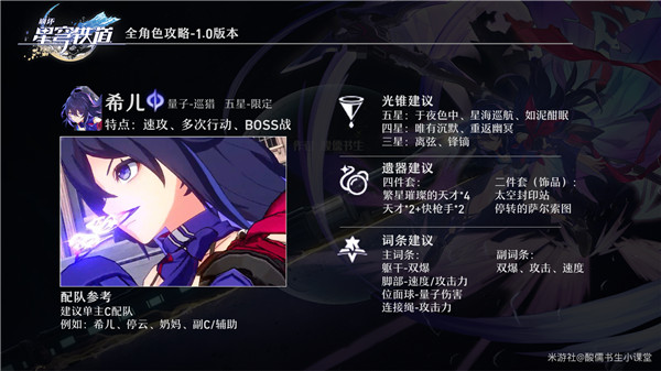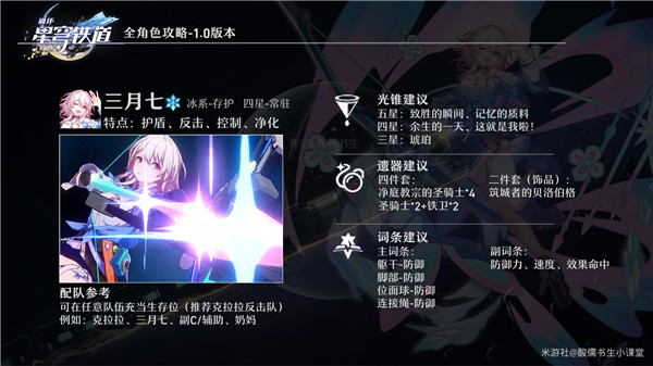 崩坏星穹铁道角色攻略是什么?本作即将在4月26号公测上线,开服1.0版本有十几个不同的角色可以选择培养,每个角色的玩法机制与培养方式都是不一样的,这里就为大家带来崩坏星穹铁道角色攻略大全图文详解,一起去看看吧。