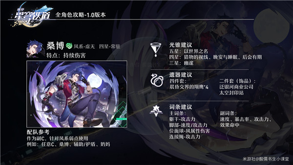 单看风系输出也已经有了优秀的丹恒,所以在没有新的风伤搭档出现前桑博不建议培养。
