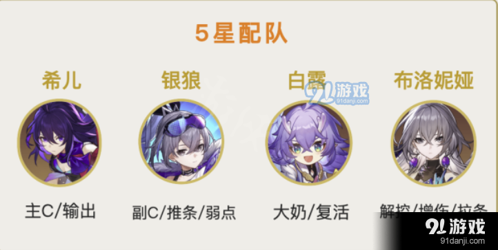 希儿和银狼是队伍核心,而布洛妮娅、白露属于个人推荐,大家能够通过自己的喜好调整奶和辅。