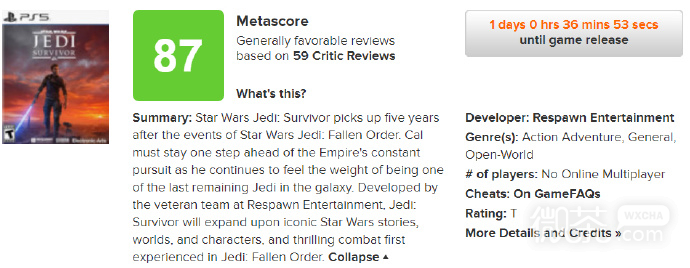 还有许多星球大战童鞋不知道星球大战绝地幸存者媒体评分解禁MC评分为87分一览,现在由第一资讯网小编收集编写的《星球大战绝地幸存者媒体评分解禁MC评分为87分一览》,有兴趣的小伙伴们往下看看吧,也许能帮助到大家。