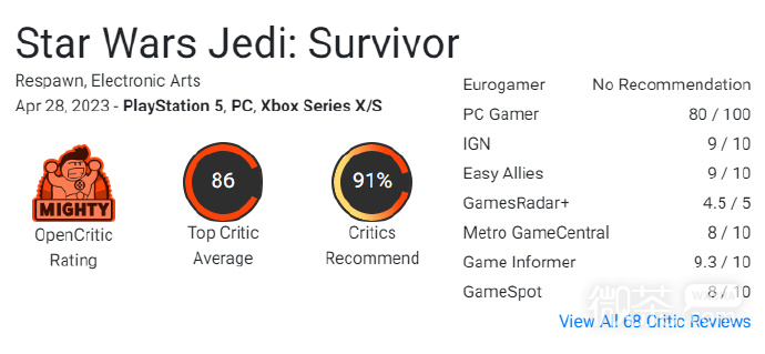 其中 IGN 9分、Game Informer 9.3分、GameSpot 8分、PC Gamer 8分。