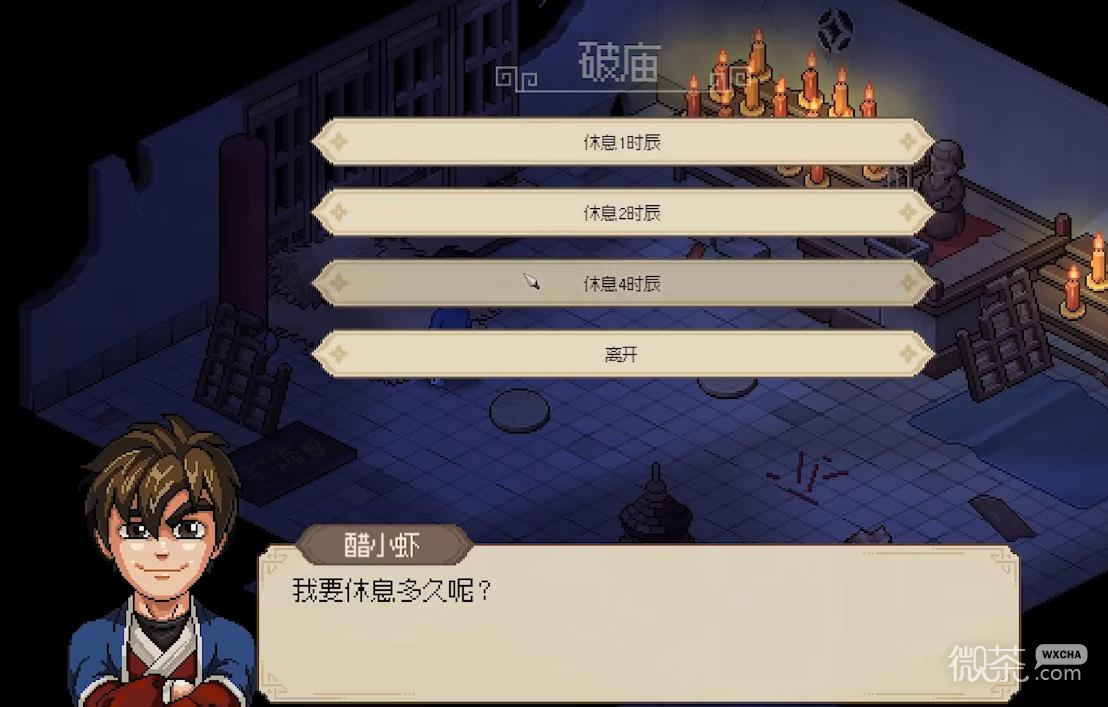 开局直接去破庙,不停选择休息4时辰。