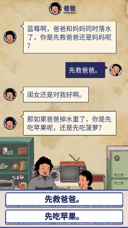 那如果爸爸掉水里了,你是先吃苹果呢还是先吃菠萝?