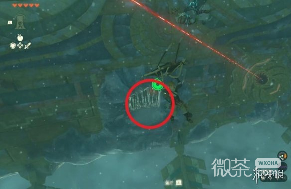 看到一个敌人守卫全是碎裂的石板,消灭敌人后向上使用通天术。