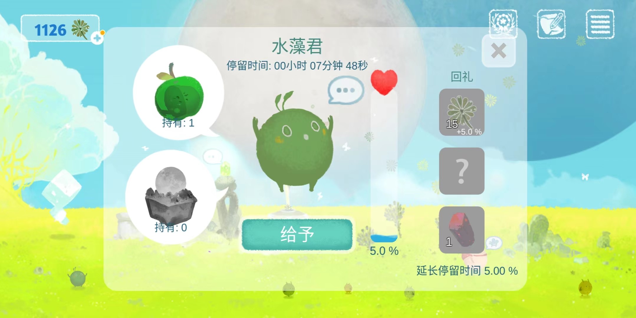 点击这些访客,就能知道他们喜欢什么样的道具,如果有他们喜欢的道具可以点击给予,那么也会有手信回馈,可能就是解除诅咒道具红色水晶道具。如下图所示,水藻君就喜欢圆圆的水晶苹果,月面君喜欢带有海星图案的棒棒糖等等。