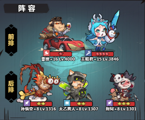 如果铲屎官们想要在50回合内击败BOSS,那么提升团队的整体输出,针对BOSS打出更多单体输出就成为了铲屎官们组建阵容的主要任务。推荐的阵容为:曹操+太乙真人+王昭君+孙悟空+荆轲。