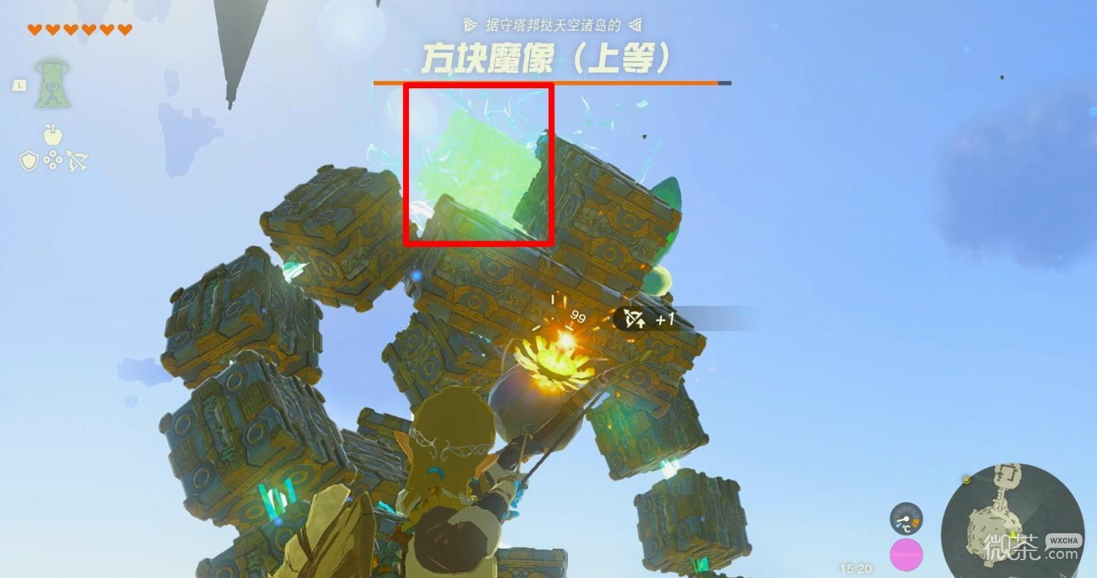 方块魔像身上会有一个弱点方块不断变换位置,我们只需要反复攻击弱点模块即可将其消灭。