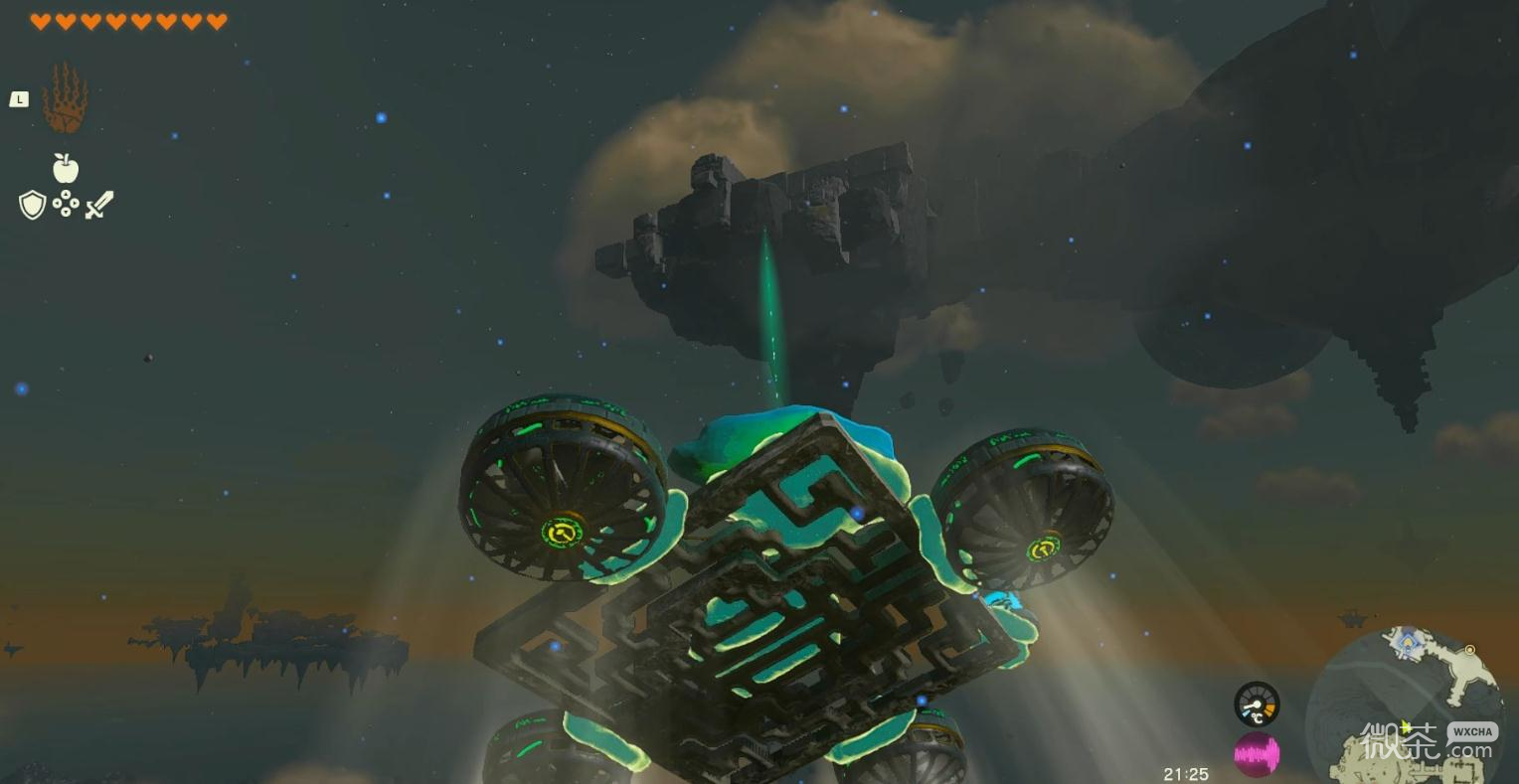消灭方块魔像后可以在空岛的另一头找到一台左纳乌飞行器。