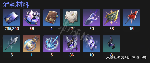 希儿:60级(包含60突破的材料)至70级(不突破)材料表如图所示。