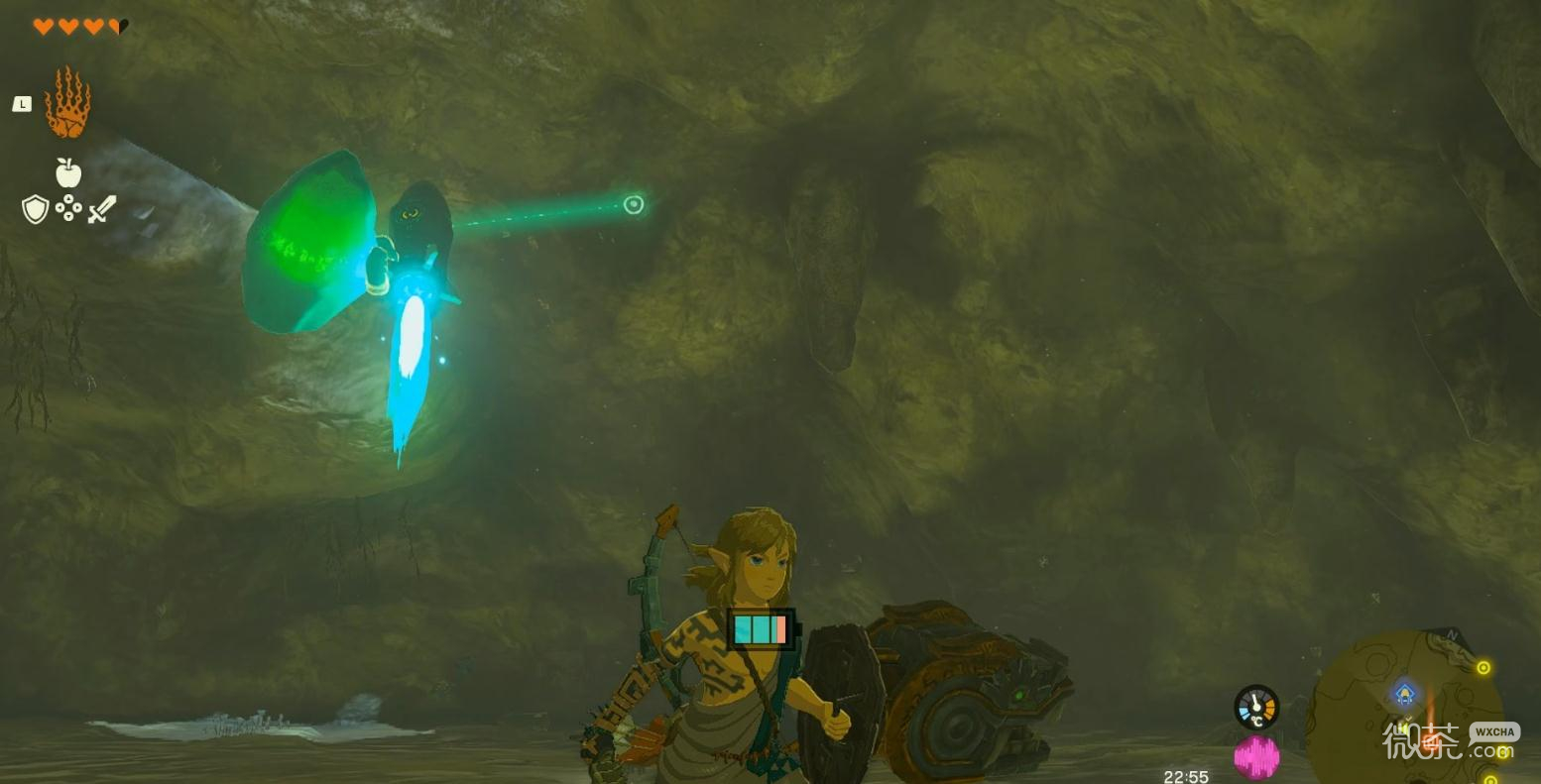如果此时身上没有盾牌,就只能来到洞窟深处,破坏顶上的岩石后一点一点爬出洞窟。