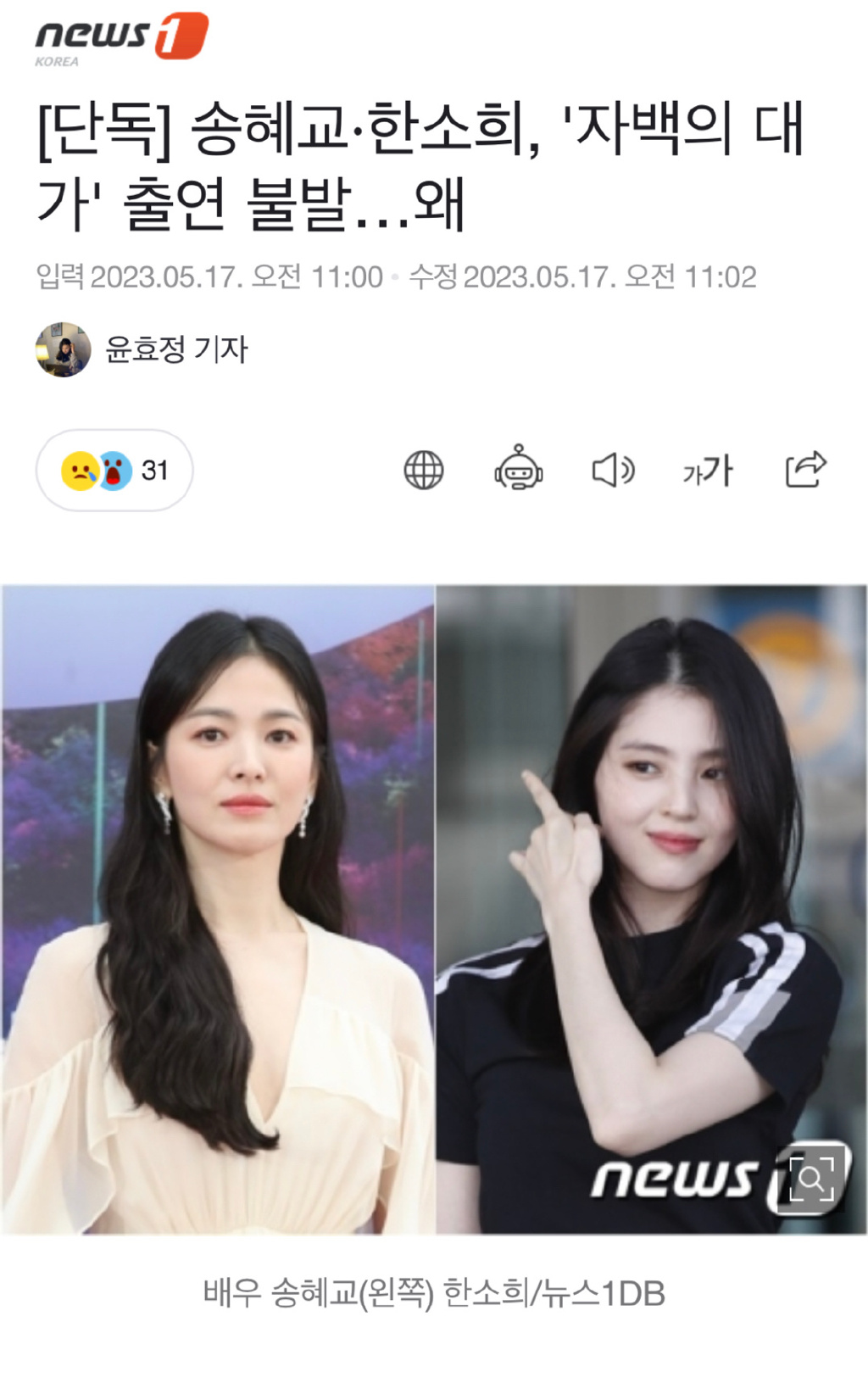 原本因宋慧乔与韩素希的合作而受关注的自白的代价面临原定主演和导演全部退出,不得不将重新挑选主演和导演。