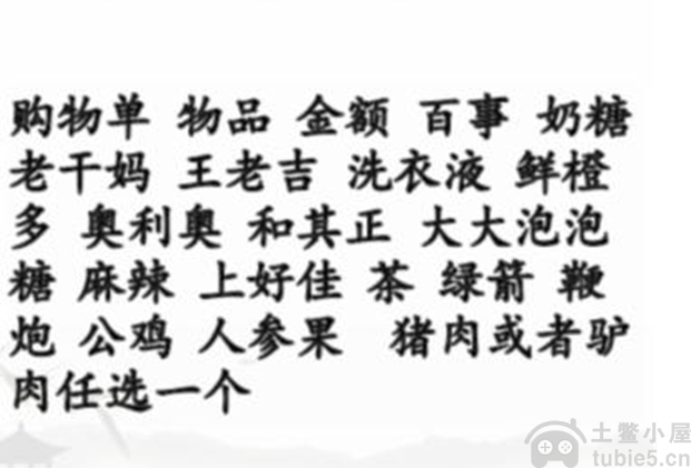 以上就是我给大家带来的汉字找茬王搞笑年货单图文攻略的全部内容,游戏中还有很多精彩的游戏玩法和活动等着大家去体验,我将继续更新精彩内容,带给大家更多的游戏玩法,让大家体验最好的游戏过程,下次再见。