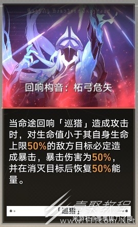 我的打法就是输出基本靠命途回响,只要有正常主c,巡猎的回响伤害很可观,特别是在拿到回响构音:柘弓危矢
