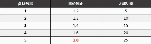 但是也有例外,失败的料理是不享受售价修正倍数的。例如在使用5个食材的食谱中加入矿石,售价就会变为2卢比,因此不建议烹饪。大成功的话料理效果会延长。