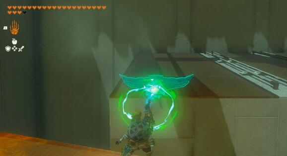5、在右侧可以拿到滑翔翼旁,然后带到左侧举高再放下,使用倒转乾坤就能够拿到上层的宝箱了。