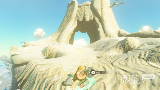 当我们通关了第三座古塔恩巴奇神庙后,就会解锁通天术的能力,出了神庙向右边看,如图所示,来到那石板下方。