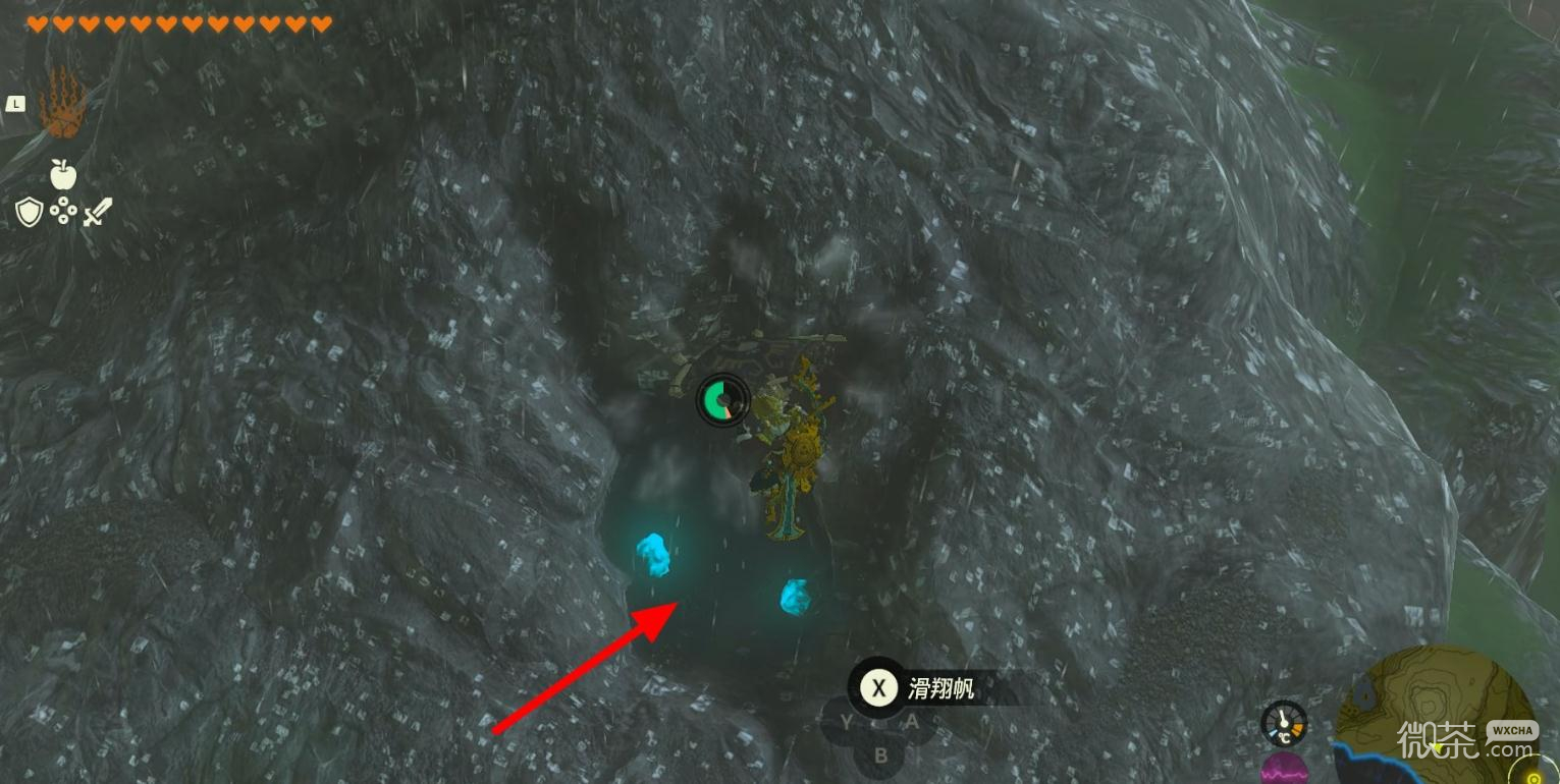 在山的北侧可以发现一个门口有两个夜光石矿的洞窟。
