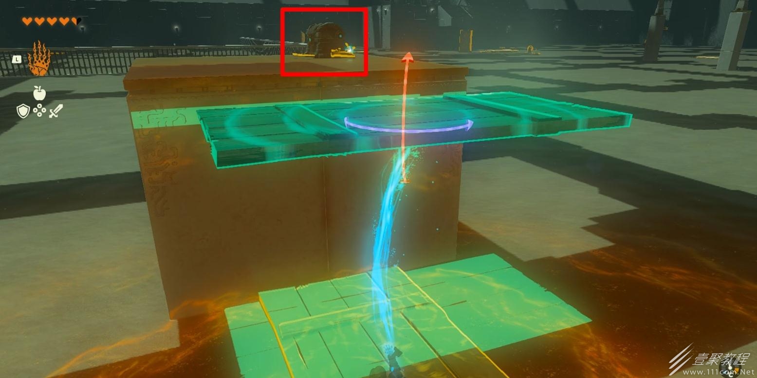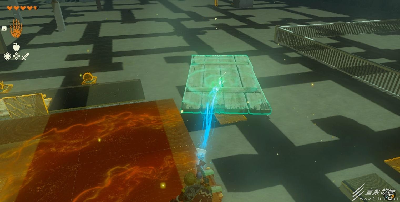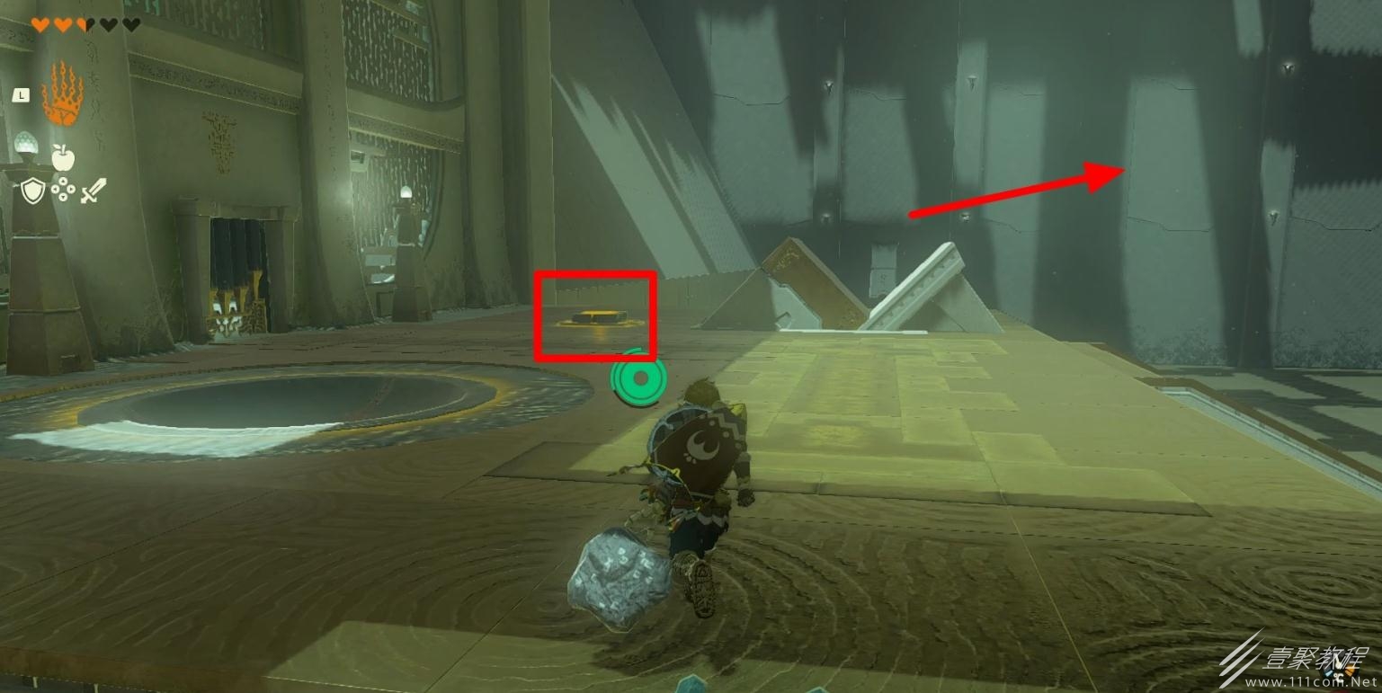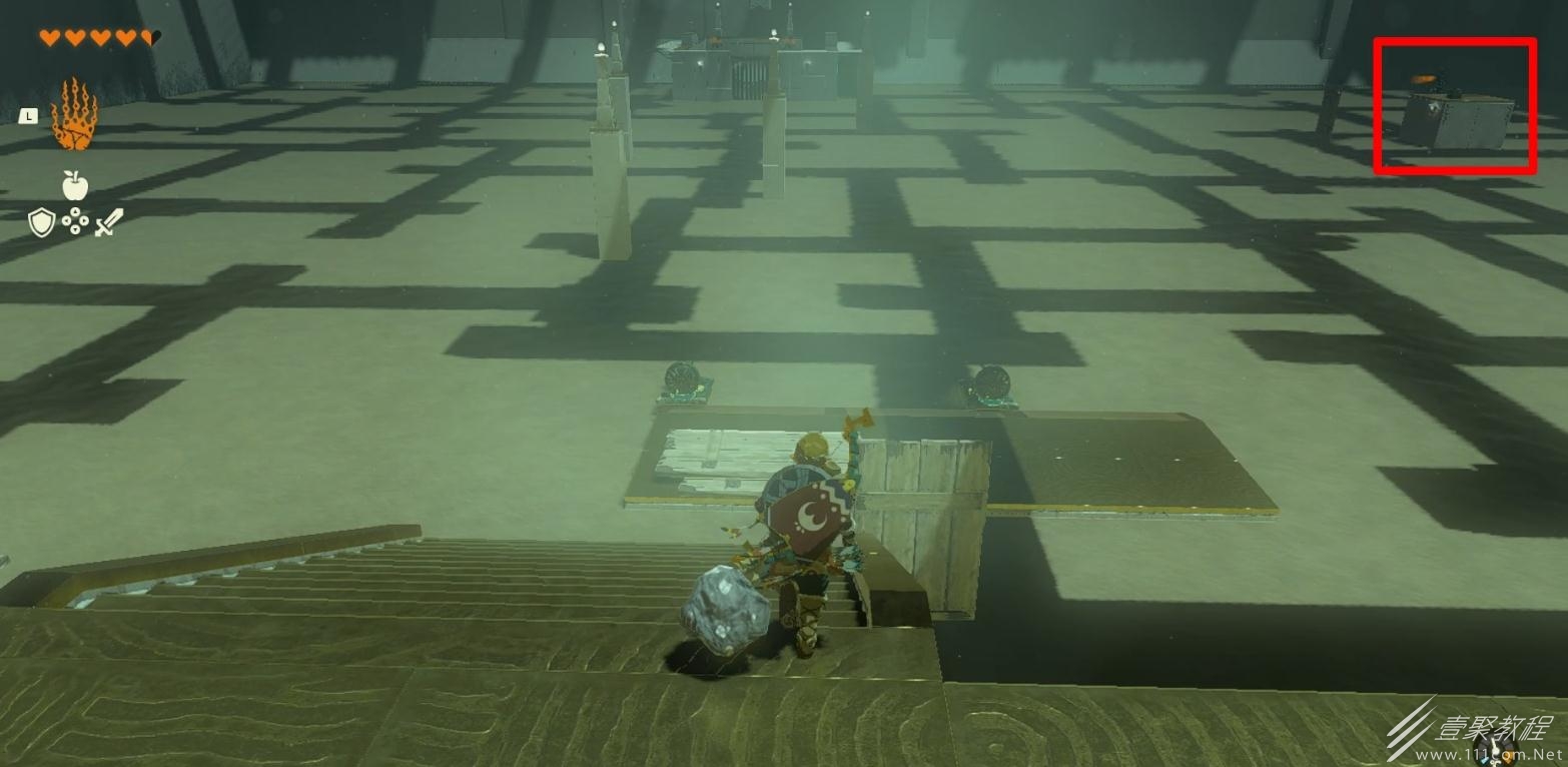 随后举着木板去踩机关可以让小球不被弹飞,再将小球放入旁边的坑中即可完成该神庙。