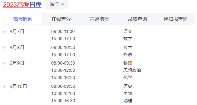 2023浙江省高考时间安排表