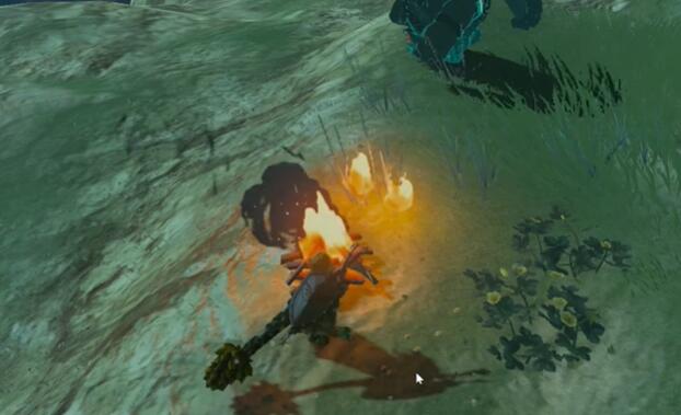 3、在这里使用木柴与打火石进行点火,然后等待第二天早上。