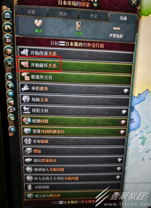因此玩家首先要花费影响力来破坏两国关系,然后玩家就能对目标发起外交博弈甚至升级为战争。