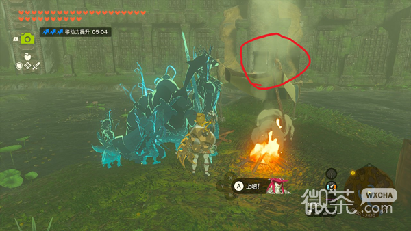 6、乔克乌神庙附近,有些藤蔓,打掉后进去,就有开启第五位贤者挑战的门。这个门需要扣10颗心。