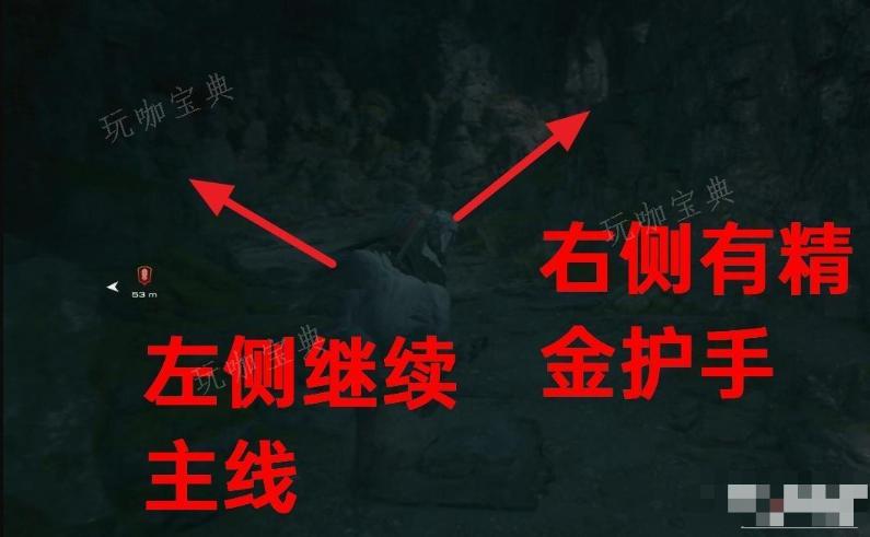 即将到达尽头的时候有一个岔路,里面可以拾取【精金护手】。