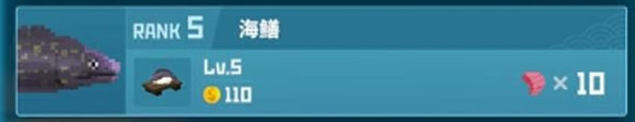 海鳝RANK5等级在五级就能产出来10块肉,售价基本上是在110元,量少效率低。