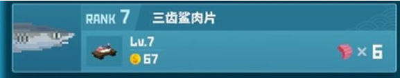 在这款游戏之中更推荐的鱼就是三齿鲨RANK7,等级是七级,能产出6块肉售价是在67。