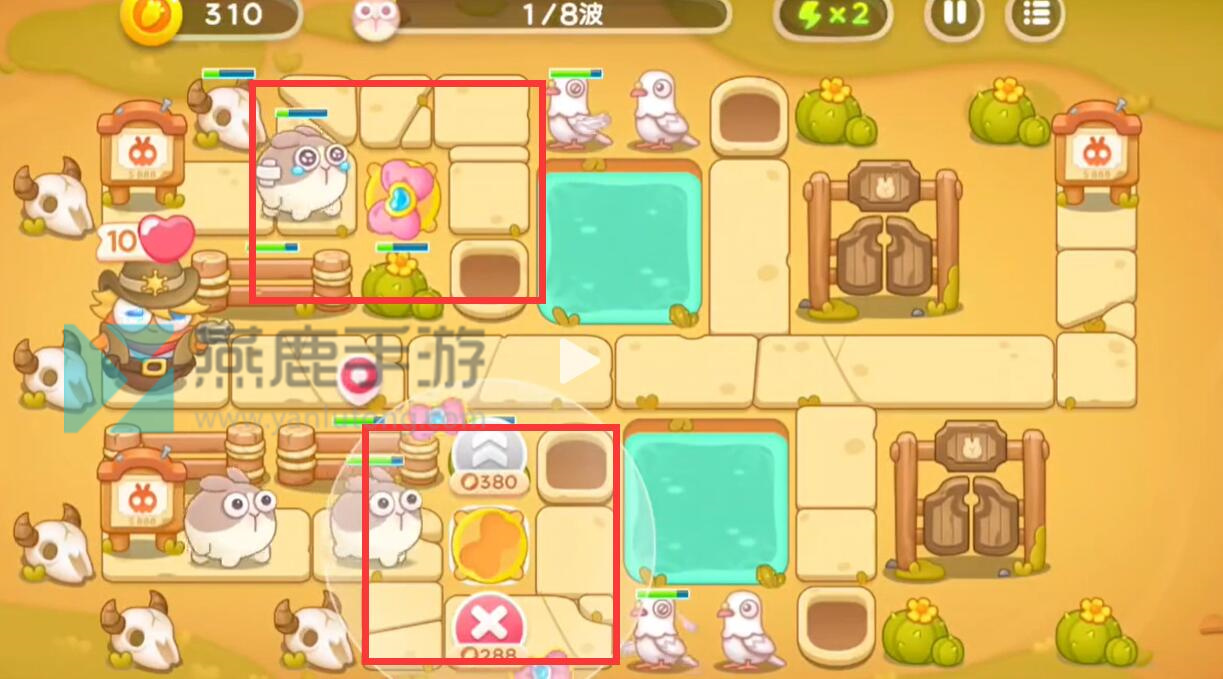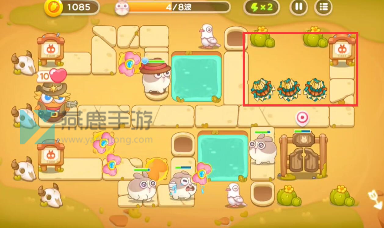 2、在后面放几个弓箭,将后面出口出来的兔子也一并打掉。