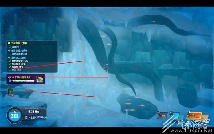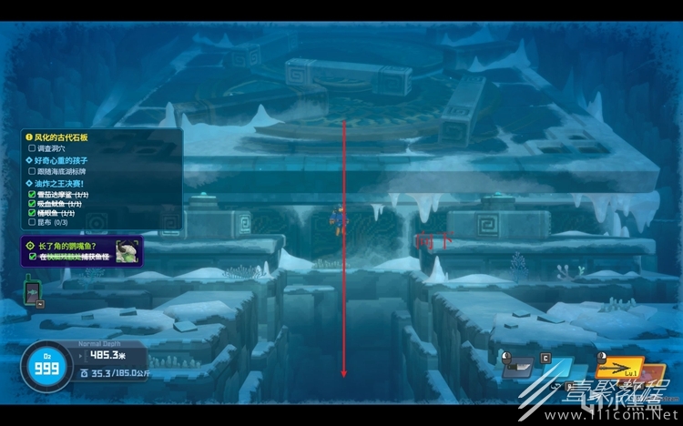 下来后,一直往左游,进入密室