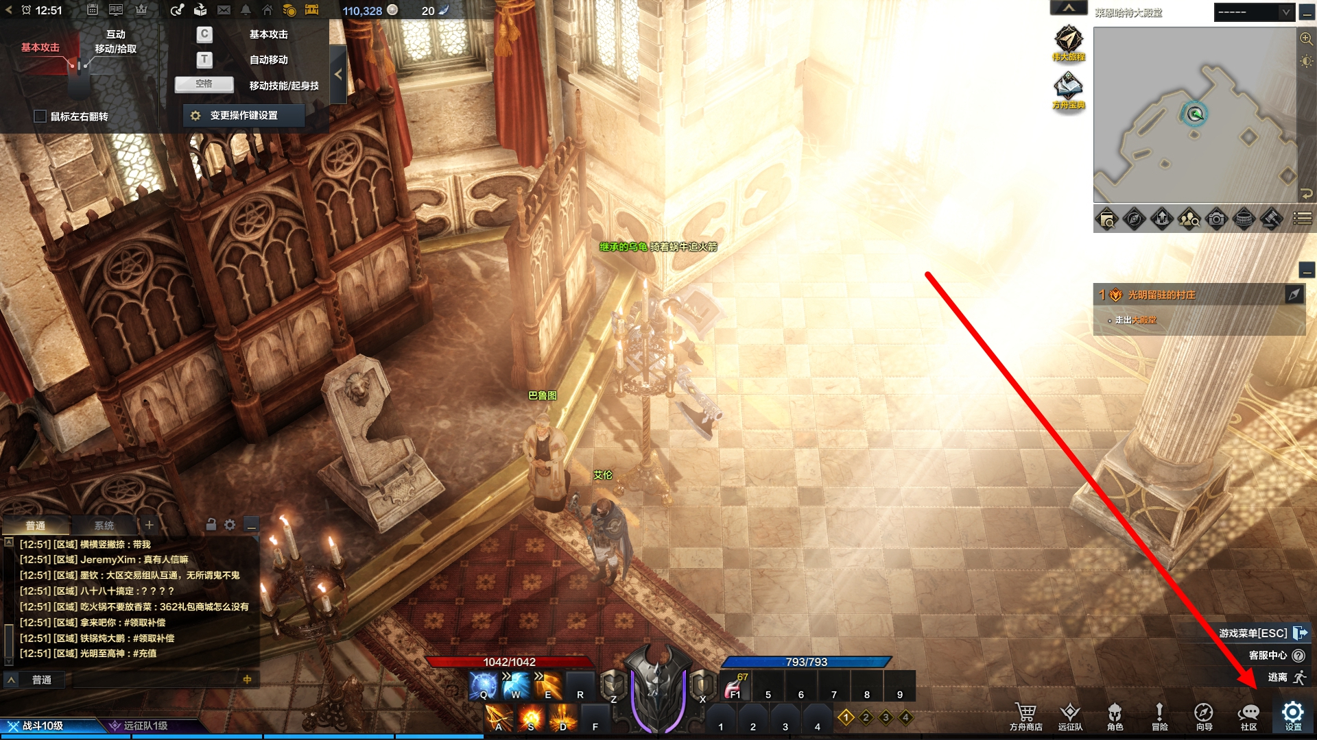 1、游戏中玩家能够通过右下角的齿轮设置,打开游戏菜单(或按ESC)。