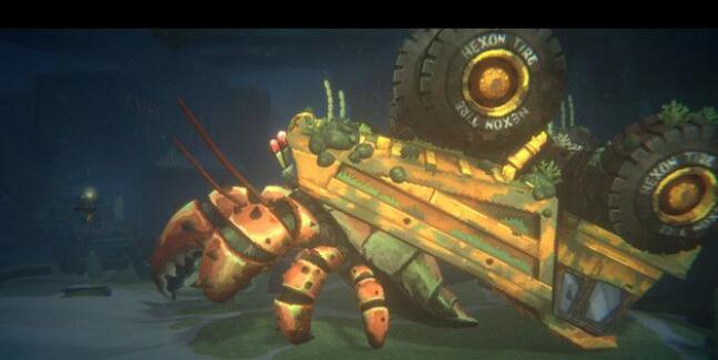 2.在暴风雨夜晚找到并进入旋涡,将遇到一个有金属卡车作为护甲的大螃蟹BOSS。