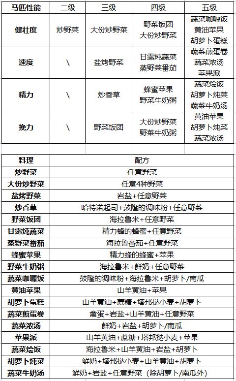 提升马匹性能食谱汇总