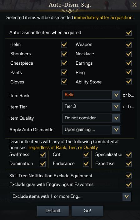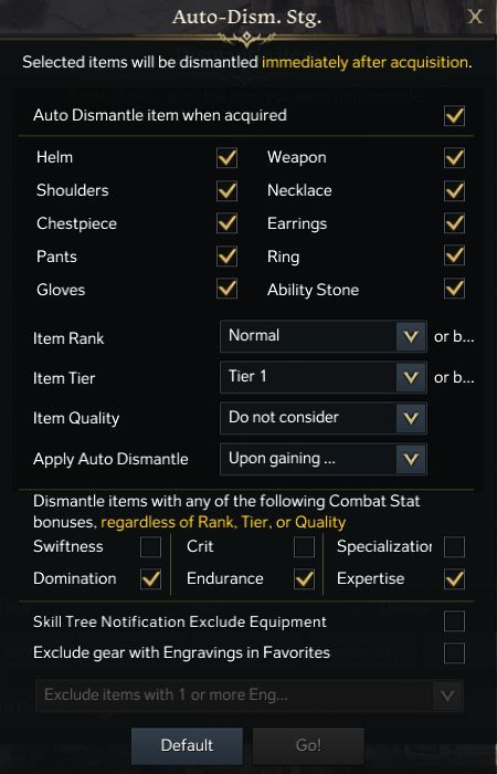 2.首饰和三脚架混在一起充满矛盾,例如第四栏把三脚架除外后,剩余垃圾三脚架只能被第二栏分解,但是第二栏不能设置分解最高阶物品,不然第三栏留下的暴击专长迅速首饰也会被分解