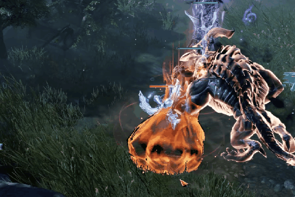 BOSS聚集能量在身后产生爆炸,技能伤害不高但是击中后会给玩家附加【黑暗状态】debuff。