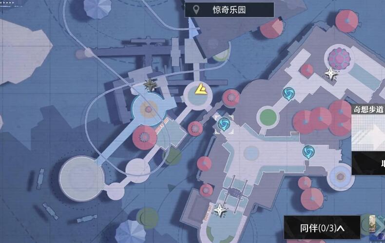 玩家晚上从奇想步道进入,可以在惊奇乐园地图的中间靠上部分找到拍照地点进行拍照。