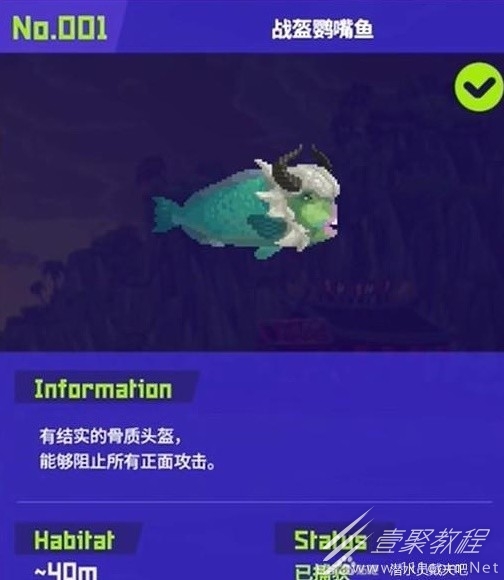 1. 战盔鹦嘴鱼:分布在海底40米,头部很硬,会用冲撞攻击。要注意躲避,战盔鹦嘴鱼只有侧身能受到伤害,这样才能成功捕捉。