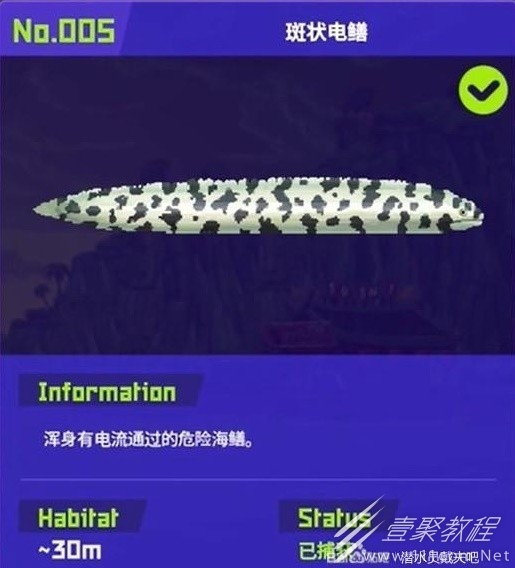 5. 斑状电鳝:分布在海底30米,全身通电,捕它时需要保持好一定的距离,这个没有武器要求。