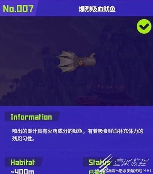 7. 爆烈吸血鱿鱼:分布在冰河通道400米,没有武器要求。