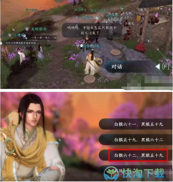 1、玩家需要前往小桃仁的(925.1065)跟其进行对话,这里是选择白棋六十二,黑棋五十九。