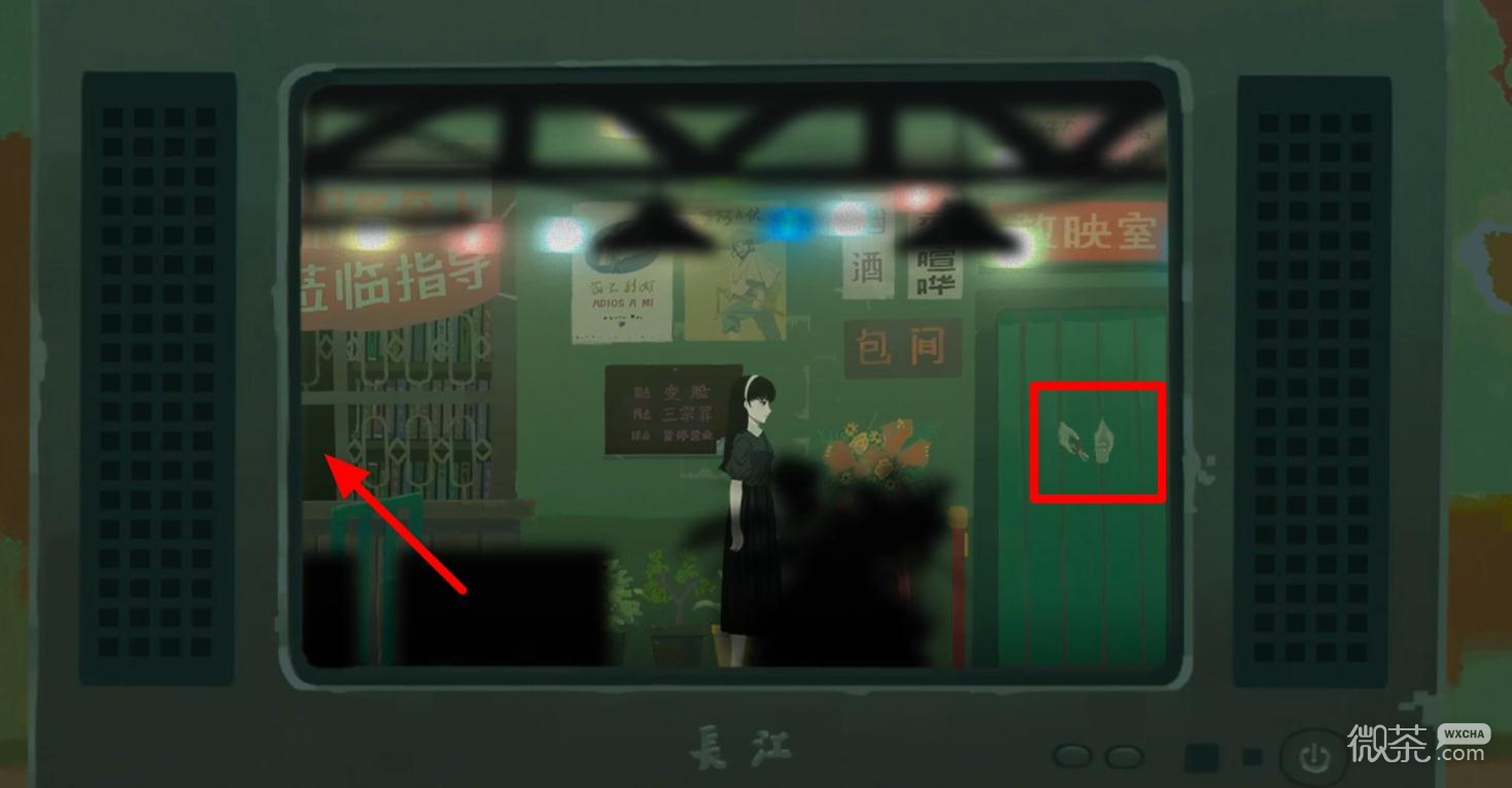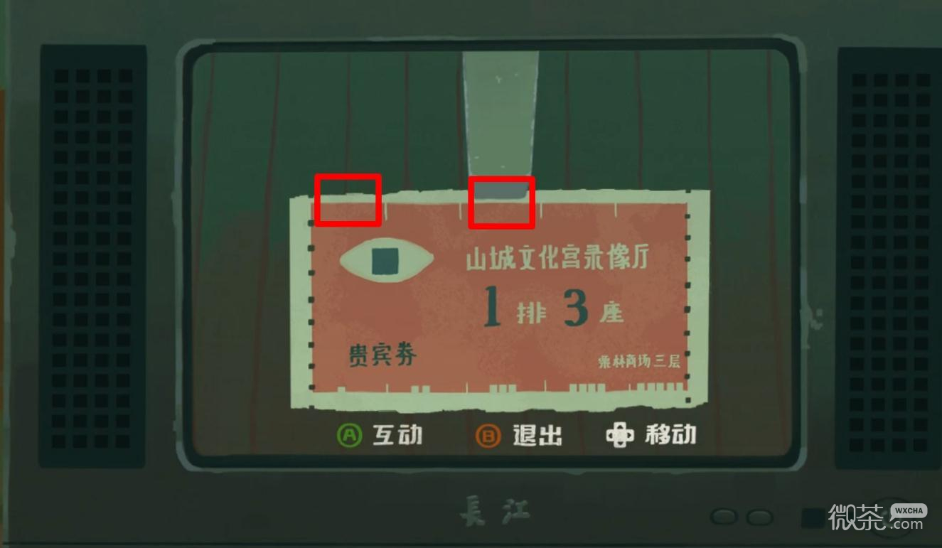 玩家进入录像厅后与从放映室门后伸出的手互动,得知需要门票才能够进入放映室。随后从大厅中间的售票窗口获得门票。