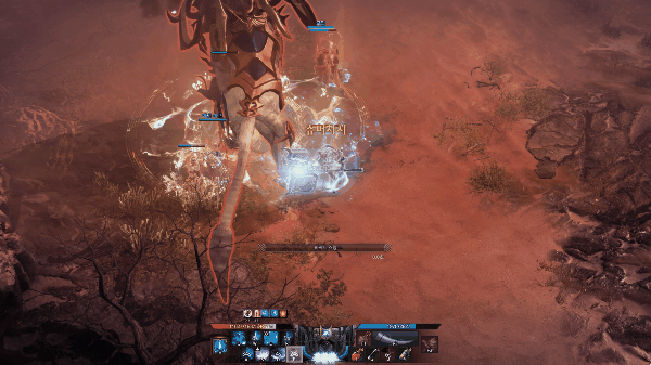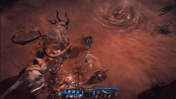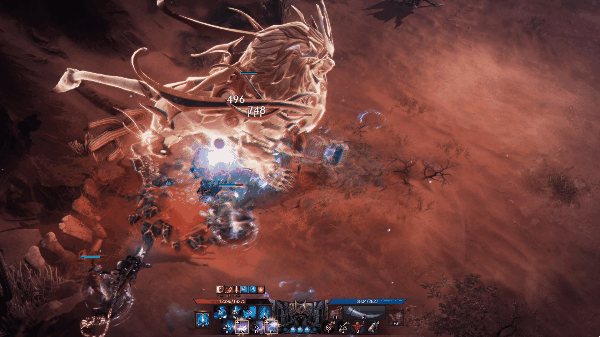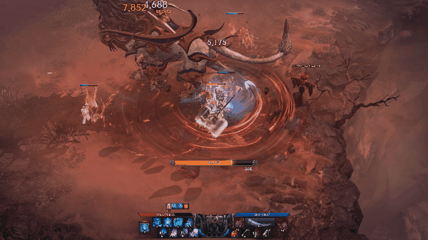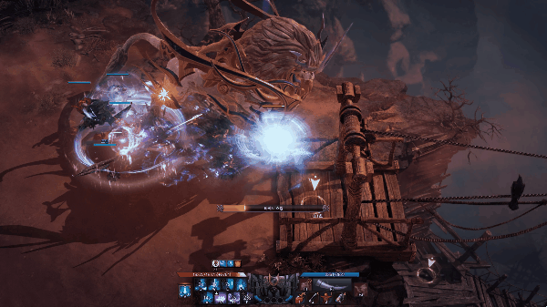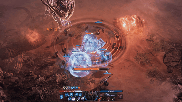 BOSS拍打地面,召唤出冲击波对玩家造成伤害,该技能伤害很高。