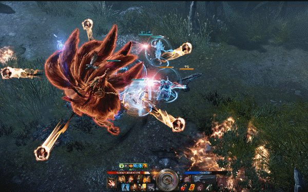 技能描述:红焰妖狐瞬身到玩家附近,在完成甩尾攻击后,随机在玩家附近一个位置召唤一个分身再次进行一次甩尾攻击。