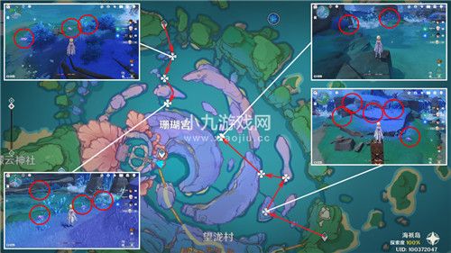 原神3.8版本珊瑚真珠最佳采集路线位置介绍: