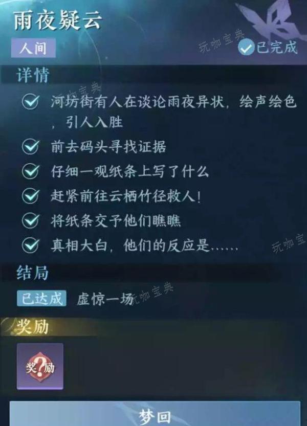 以上就是《逆水寒手游》人间任务雨夜疑云任务攻略的全部内容 ,更多《逆水寒手游》相关攻略点击《逆水寒手游》专区查看!